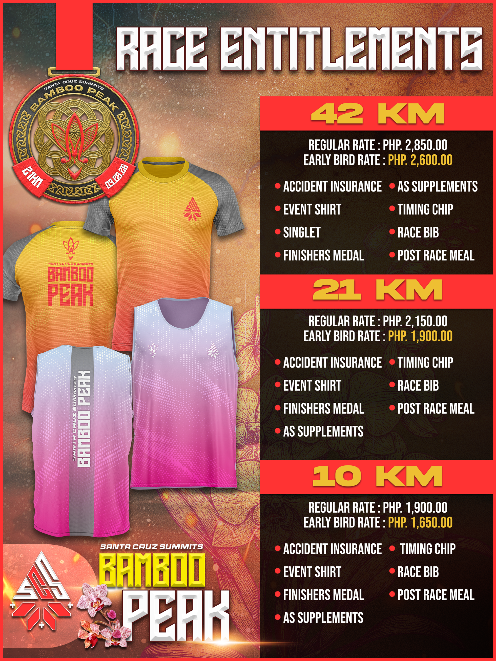 ➼ To ensure the safety and well-being of every runner, a medical certificate valid within the last 6 months is required for all categories. Runners who fail to present/submit a valid medical certificate will not be allowed to participate. Laboratory test results marked as 'passed' are not valid and will not be honored.