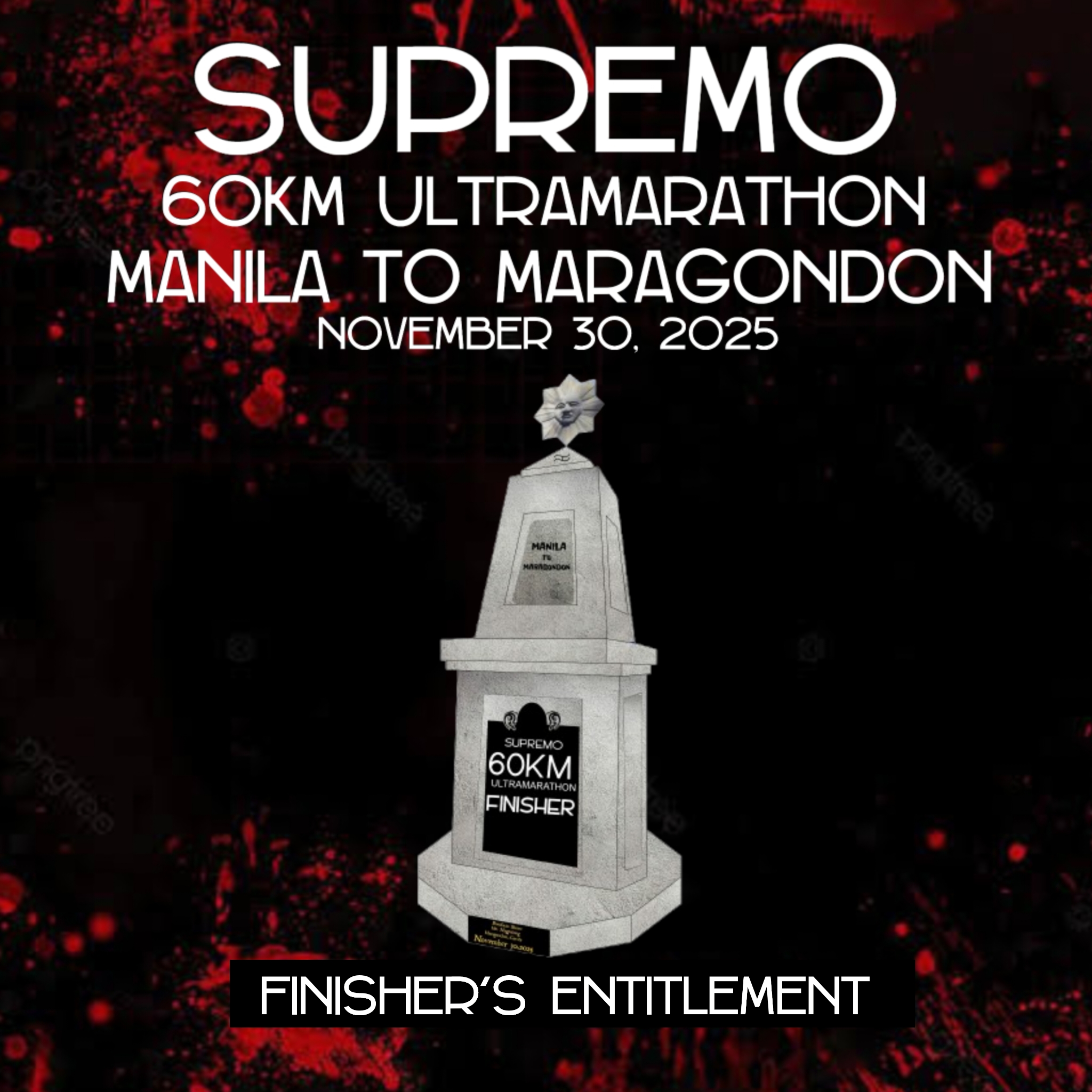 Saint Lazarous Running Club proudly presents the "Supremo 60km Ultramarathon Race". The race is a long distance city to mountain run as it revisits history traversing the route where Supremo Andres Bonifacio was born in Tondo to Mt. Nagpatong where he was executed by his fellow countrymen. The event aims to encourage everyone to commemorate the greatness and heroism of the first president of the Philippines under the revolutionary government, Haring Bayang Katagalugan. As highlight of our event, we celebrate the 162nd Birth Anniversary of Andres Bonifacio on November 30, 2025. The event also endeavors to raise funds for the Kabataan Para sa Kinabukasan Projects.